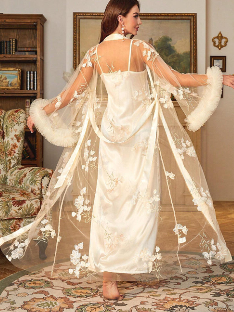 ✨💖 Unveil the magic of the season with this breathtaking satin and lace ensemble that exudes elegance and desire. The silky gown caresses her curves, while the sheer, embroidered robe with crinoline cuffs adds a touch of heavenly allure. 🌙💋 Perfect for candlelit evenings by the fire or dreamy mornings unwrapping gifts, this set is a promise of romance and unforgettable moments. Wrap her in luxury and watch her glow—because she deserves nothing less than divine. 🎁🎄❤️