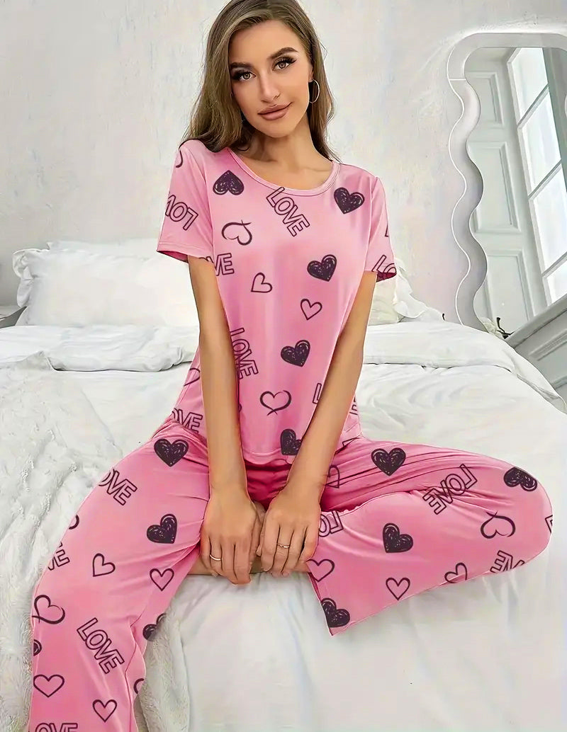 Surprenez votre chéri(e) pour la Saint-Valentin avec un mélange parfait de confort et de romantisme ! 🌸 Ce pyjama rose poudré, parsemé de cœurs 🖤 et de l'inscription « LOVE », est une douce façon de lui dire « Je t'adore ». Confectionné dans un tissu doux et extensible, il est féminin et irrésistiblement charmant. C'est le cadeau idéal pour l'envelopper d'amour toute l'année. 💕✨
