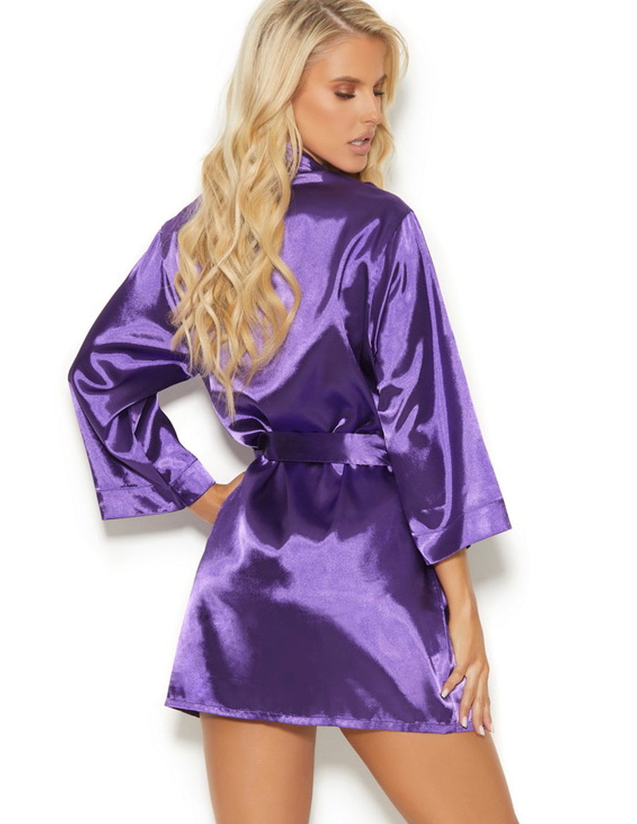 見事に作られたパステルサテンペニョワール2点セット。このナイティは、V の谷間、調節可能なストラップ、贅沢なセクシーな感触、光沢のある光沢が特徴です。付属の着物ローブは七分袖で、取り外し可能なベルトも付いており便利です。
