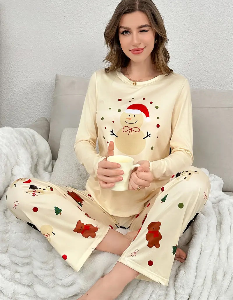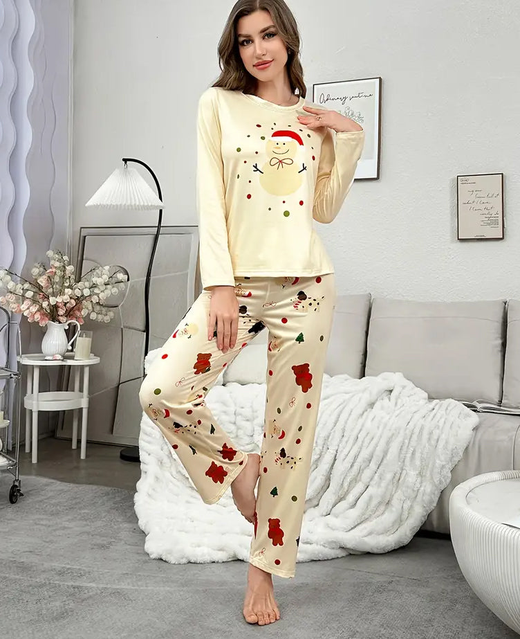 This Christmas, surprise her with the perfect blend of cozy and romantic.🎅 Adorned with playful snowmen and festive bears, this silky-soft pajama set is made for fireside cuddles and magical winter evenings. A gift as enchanting as the season itself—she’ll adore you for it! ❄️🎀