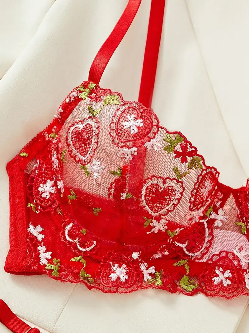 💕 Ignite passion and romance with this enchanting red lace panty and bra lingerie set. Adorned with delicate hearts embroidered in delicate Victorian details, it's the perfect gift to make her feel adored. 🌹✨ Surprise your sweetheart this Valentine's Day with elegance and allure she'll never forget! ❤️