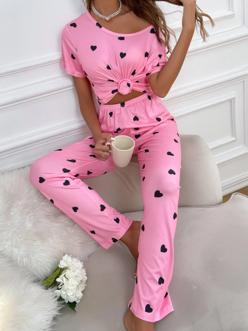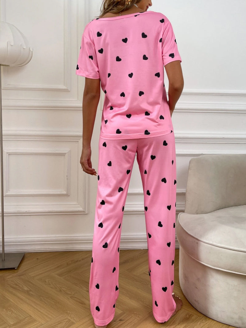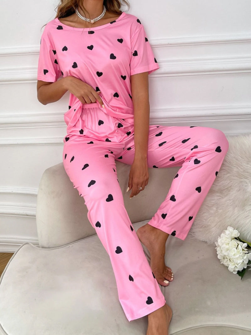 💘 Fall for the ultimate blend of comfort and charm! 🌸 This irresistibly cute pink lounge set, sprinkled with heart prints, features a trendy short sleeve top and relaxed-fit pants. Perfect for cozy mornings ☕ and romantic nights ✨—a gift as sweet as your love! 💕